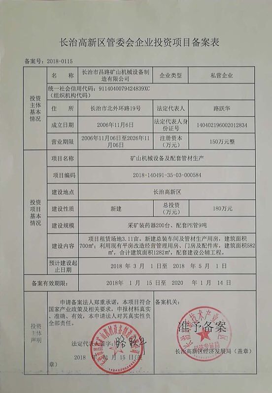 關(guān)于“長治市昌路礦山機(jī)械設(shè)備制造有限公司礦山機(jī)械設(shè)備及配套管材生產(chǎn)項目”環(huán)境影響報告表的批復(fù)